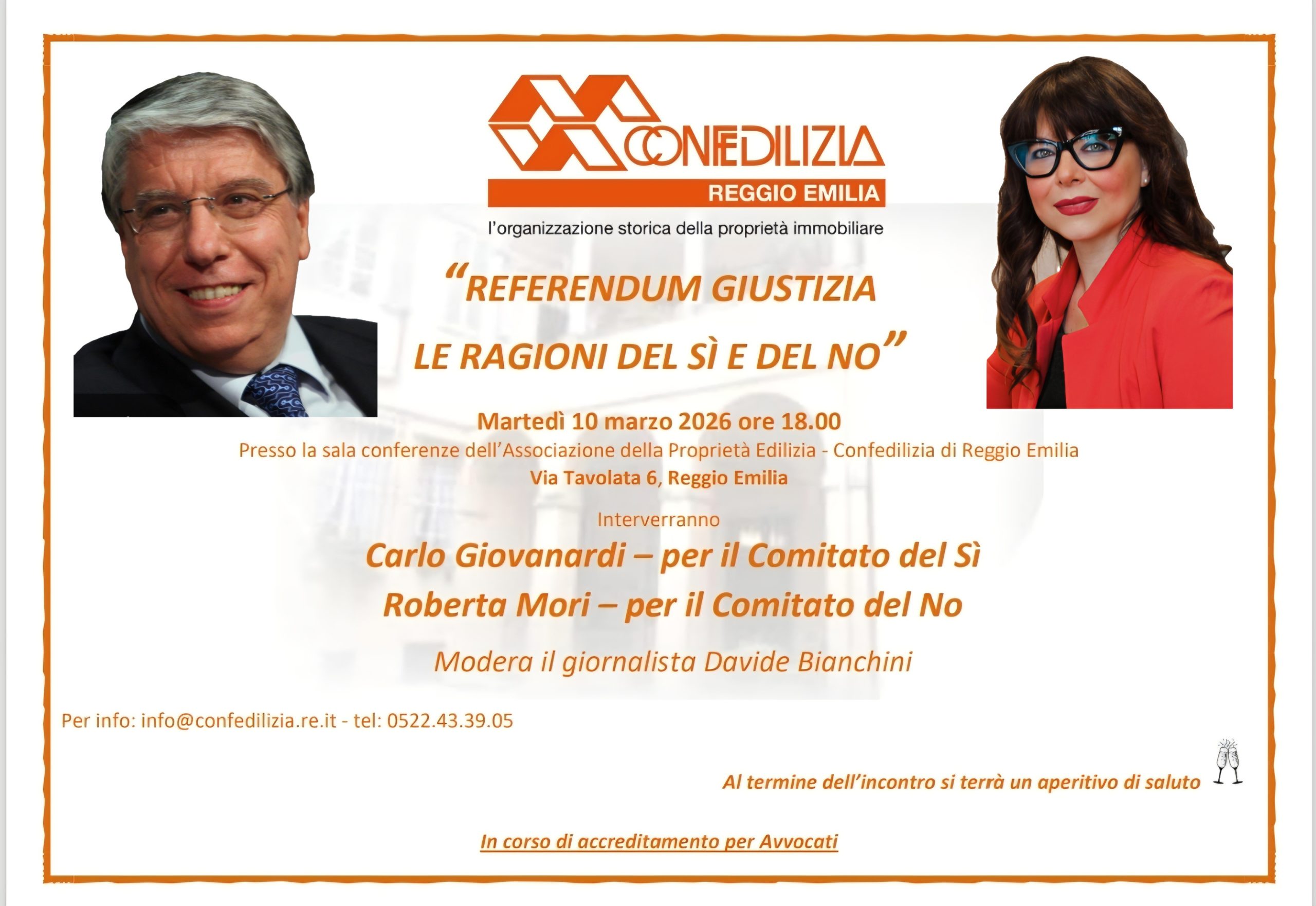 L’Associazione della Proprietà Edilizia Confedilizia di Reggio Emilia, presso la sala conferenze dell’Associazione in via Tavolata 6 a Reggio Emilia, organizza il convegno